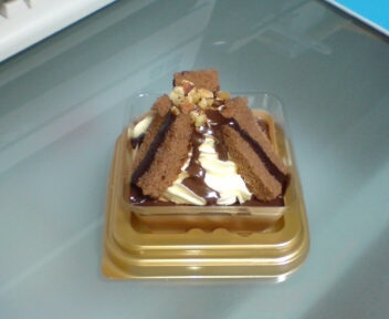 ^/^ 9/1 view large picture サンクスの『山盛りショコラケーキ〜バナナホイップ添え〜』を食べた!チョコムース(真ん中にはチョコスポンジ生地)に、バナナホイップクリーム・チョコスポンジ生地・チョコソース・アーモンドがトッピングしてある!ほんのりビターな味わいのチョコムース、フワッとした食感のチョコスポンジ生地、良い甘さと香りのバナナホイップ。バナナホイップもりもりだけど、結構丁度良いバランスなんだよね(笑)王道な組み合わせ最高♪