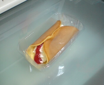 (^O^) 9/3 view large picture セブンイレブンの『ふわもち和むれっと(いちごソース)』を食べた!もちっと・しっとりな生地で、練乳を加えたというホイップクリーム・白餡・ストロベリーソースを包んである!どら焼きみたいな生地と、ミルキーなホイップ&甘酸っぱいストロベリーソースがベストマッチ☆ストロベリーソースが甘酸っぱくて合うんだよね。あと意外なのが白餡!甘さ控えめだったんだけど、味のアクセントになってて良かった。美味しかったね♪