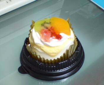 _(._.)_ 9/6 view large picture サンクスの『フルーツショートケーキ』を食べた!ミルクムースをスポンジ生地でサンドされてて、ホイップクリーム・黄桃・キウイ・苺ダイスがトッピングしてある!フワッと食感のスポンジ生地と、ミルキーで滑らかなミルクムースが合うね。フルーツの甘酸っぱさがアクセントになっててGood。